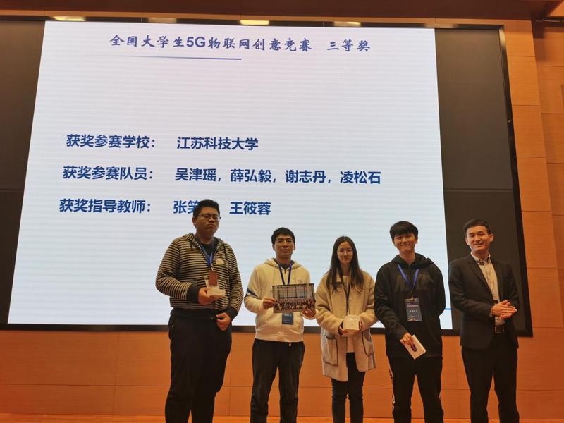 本届竞赛由全国大学生物联网设计竞赛组委会主办,上海交通大学承办,华为技术有限公司协办,竞赛吸引了全国90余所高校130多支队伍800余名师生参赛,经前期网上预赛遴选,来自南京大学、哈尔滨工业大学、四川大学、深圳大学、江苏科技大学等院校的共29支参赛队进入决赛。通过决赛现场答辩,我院由吴津瑶、薛弘毅、谢志丹、凌松石四位同学组成的“未来方舟”队的参赛作品“基于5G的港口桥吊平行控制系统设计”,在指导教师张笑非老师、王筱蓉老师的带领下,经过前期项目悉心打磨、决赛现场激烈角逐,最终获得了全国三等奖的好成绩。