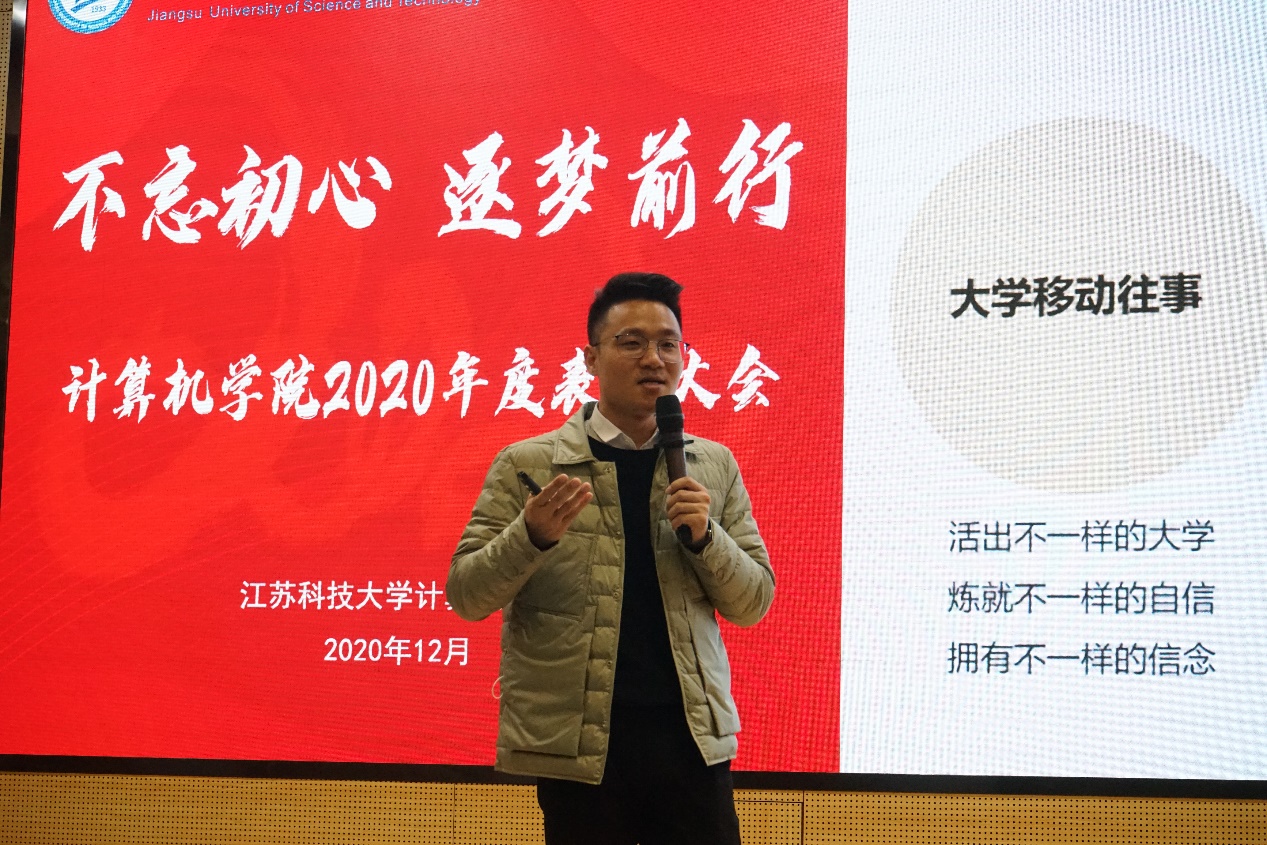 陈群同学作为学生代表发言:努力和汗水造就了优秀的计算机学院学子们。在接下来的一年里,计算机学院学子将以梦为马,积极奉献,自信自强,为更加美好的明天不断努力奋斗。