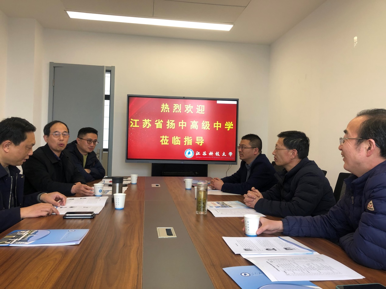 王成杰校长十分感谢江科大一行的盛情邀请,介绍了省扬中高中的办学特色,回顾了与我校的合作历史,并就高中生的培养与我校参会成员进行了深入交流,表示后期将继续努力为我校输送优质生源。会后,省扬中高中一行参观了长山校区、船舶航模馆等。