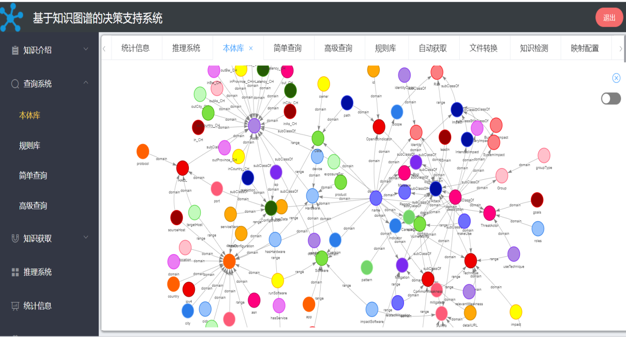 研究所承担的中央军委装备发展局共用技术项目:面向***应用领域的知识图谱决策支持方法及系统,研究开发了基于知识图谱的某应用领域决策支撑系统,在多源知识统一建模及知识图谱构建技术、多源知识融合及知识库自动检测技术、可支持百亿级知识条目的存储与管理技术、交互式知识图谱可视化技术以及复杂决策辅助信息的智能推理技术等方面形成了具有自主知识产权的解决方案,申报5项国防发明专利。技术水平达到了国内领先水平,构建的基于知识图谱的决策支持平台,在某应用场景中通过实测验证。