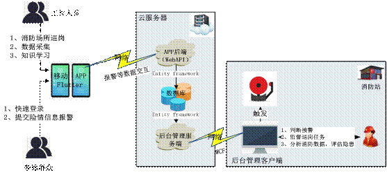 研究所承担的江苏蓝图消防装备有限公司委托开发项目:消防报警智能综合系统,该系统适用于各类城市微型消防站,使用互联网技术,简化火情等紧急情况报警流程,提高接警和响应效率;运用移动终端定位、在线巡查等形式,提升对消防人员的管理水平;运用数据可视化技术,在线实时对辖区内微型消防站的数据进行记录和监测;采用在线学习的方式,使兼职消防人员能利用碎片化的时间进行消防安全知识的学习。