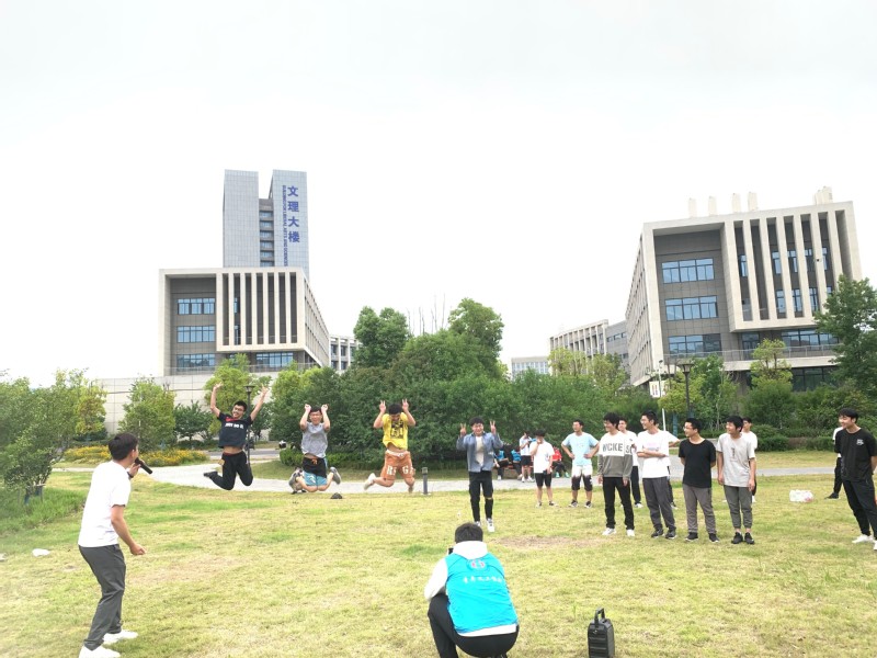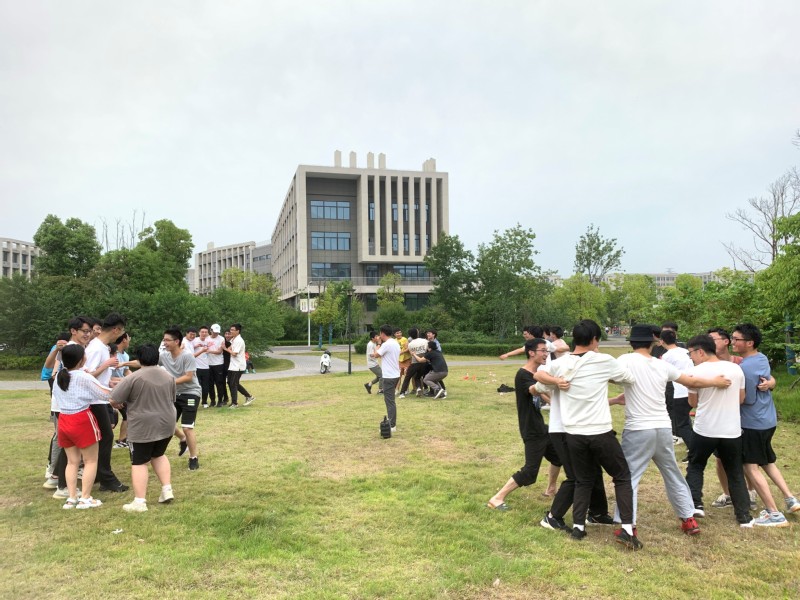 在户外素质拓展活动中,活动伊始,进行热身按摩操、抱团游戏“卖汤圆”,增加惩罚环节,活跃现场气氛,促进同学们相互了解,调动起大家的参与激情。