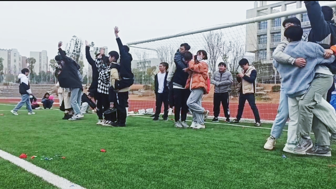 最后,同学们一起合影留念,打扫好现场卫生后离场,活动到此拉下帷幕。本活动不仅丰富了学生的课余活动,增强了同学们的集体意识和团结意识,也训练大家的反应能力。这次活动始于寒风,止于热烈,运动后的余温将伴着同学们一起历经枯燥的复习、紧张的考试。生命在于运动,此间逸趣横生!