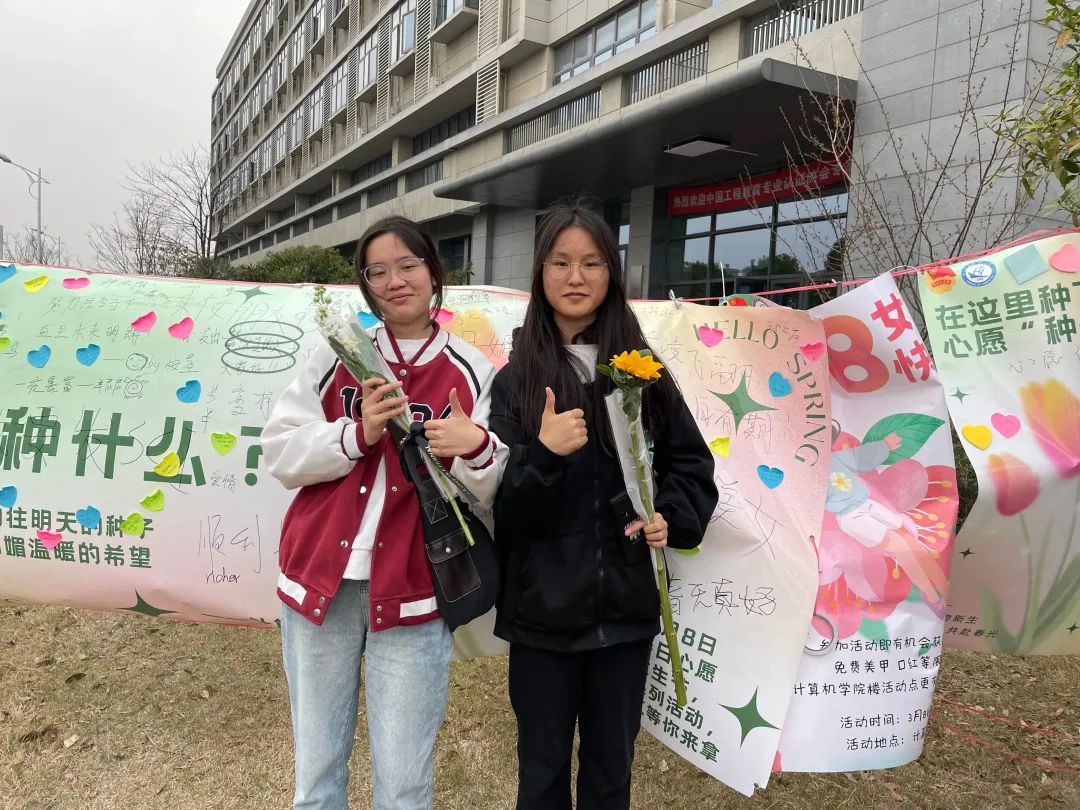活动期间,计算机学院团委的同学引导每一位参与活动的同学在留言板上留下自己对未来的希冀、对亲朋好友的诚挚祝福、对学校的美好祝愿。并为参与活动的老师与教工送上鲜花。
