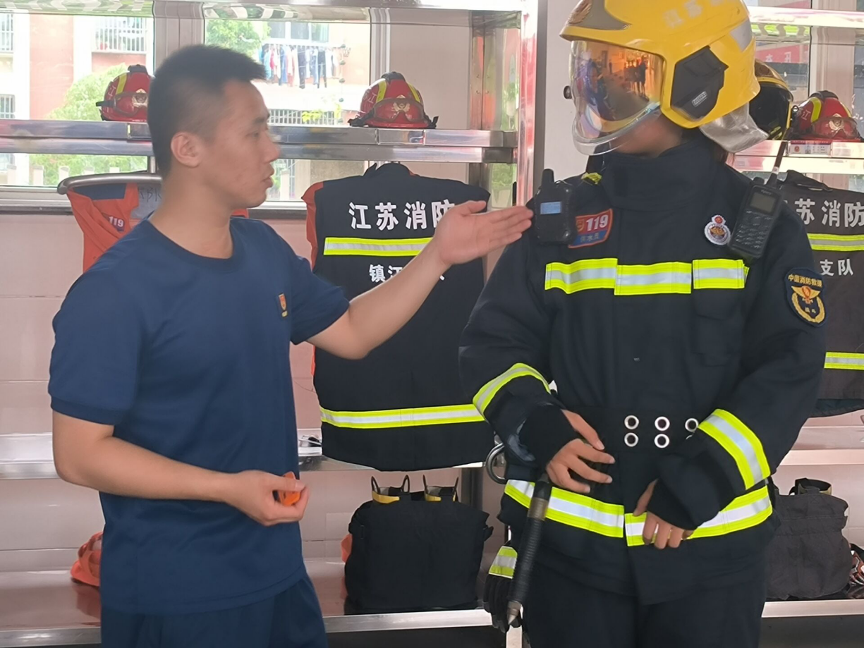 活动伊始,队伍成员在消防员的带领下先后参观了消防车,亲身体验了消防器材的使用方法,并试穿了消防救援服。在消防员的指导下,队伍成员们深入了解了消防员工作的具体内容和难度,感受到了消防员辛苦工作的不易。随后,队伍成员进行了消防员常规训练项目的体验,锻炼了自身的应对突发事件的能力。