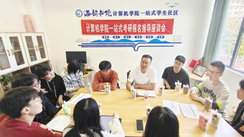 10月24日,计算机学院院长杨习贝赴学生公寓3号组团“海韵书院”一站式学生社区开展考研学子备考指导座谈会,考研负责辅导员及各个专业学生代表参加座谈。此次座谈会旨在深入了解学院各专业考研学生的备考状态,为同学们提供宝贵的考研经验和策略,同时也为学院的有关工作提供参考。
