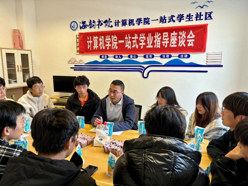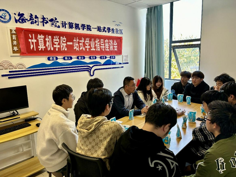 11月20日,计算机学院副院长于化龙赴学生公寓3号组团“海韵书院”一站式学生社区开展学业指导座谈会,辅导员代表和各专业学生代表参加座谈。此次座谈会致力于倾听学生心声、回应学生关切、关注学生学业发展,旨在为广大学子提供一个解决学业困惑,获取学习经验的平台,从而调动学生学习积极性,培养学生自学能力,提高人才培养质量。