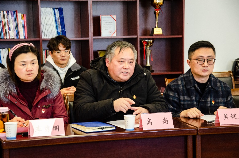 计算机学院党委书记高尚致辞。高尚首先向丹徒分局各位领导介绍了计算机学院的基本情况,以及计算机学院在人才方面的资源优势,并对与丹徒分局共建“智慧警务协同创新研究中心”表示大力支持。高尚强调,此次合作采取党建共建的形式,也是对研究中心的发展提供有力组织保障。高尚表示学院将充分发挥自身在计算机技术和人工智能领域的优势,为智慧警务的发展提供有力支持,努力推动该研究中心后续发展。