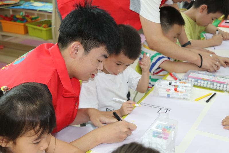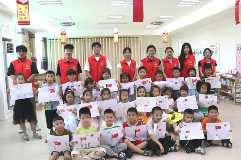 活动中,王翔谊和其他志愿者一起向小朋友们深入介绍了五星红旗的深刻含义和绘制技巧,激发了孩子们对国旗的热爱和尊重,并鼓励小朋友们拿起画笔,亲手绘制五星红旗。在志愿者的耐心指导下,每个孩子都全神贯注地用彩笔在画纸上尽情挥洒,并充分发挥个人想象力,完成了一幅幅独特的作品。这一过程不仅锻炼了小朋友们的动手能力,更让他们在创作中体会到了作为中国人的自豪感。