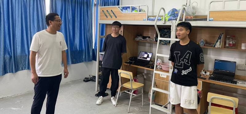 会后,学院领导老师前往宿舍关心慰问新生。