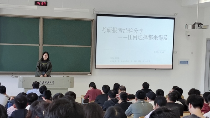 接着,2023 届计算机科学与技术(嵌入式培养)专业校友、现船舶与海洋工程学院在读研究生迟木蓉同学进行了精彩的报考经验分享。她结合自身丰富的考研经历,从备考方法的巧妙运用、时间规划的合理安排、心态调整的有效策略等多方面,为学弟学妹们毫无保留地提供了宝贵的经验和实用的建议。她的分享生动具体、绘声绘色,让同学们仿佛身临其境般了解到考研过程中的点点滴滴,为同学们在考研道路上避免误区、少走弯路提供了有力的帮助,犹如为同学们在考研的茫茫大海中点亮了一座指引方向的灯塔。