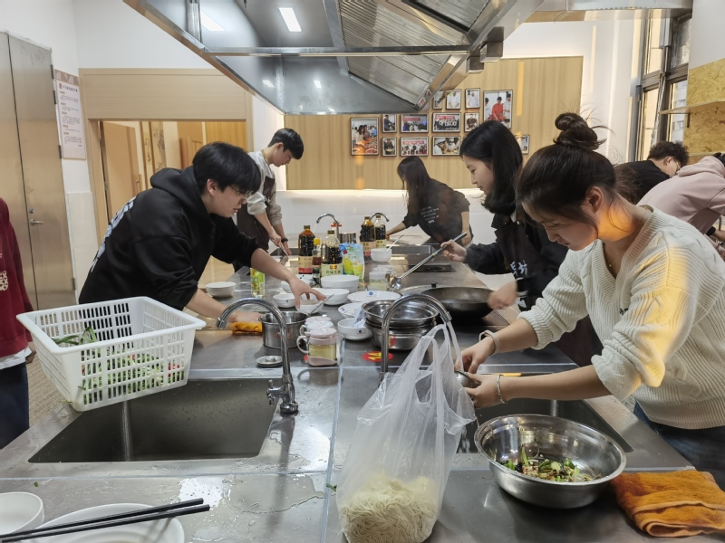 11月3日下午,计算机学院学生第一党支部在东苑共享食堂举办了一场别开生面的主题活动——“红色共享,情满厨房”。此次活动旨在通过共同烹饪家常菜,分享家庭故事和美好回忆,增强党支部成员间的沟通与团结,提升集体凝聚力,同时也为党员们提供了一个展示自我、增进友谊的平台。