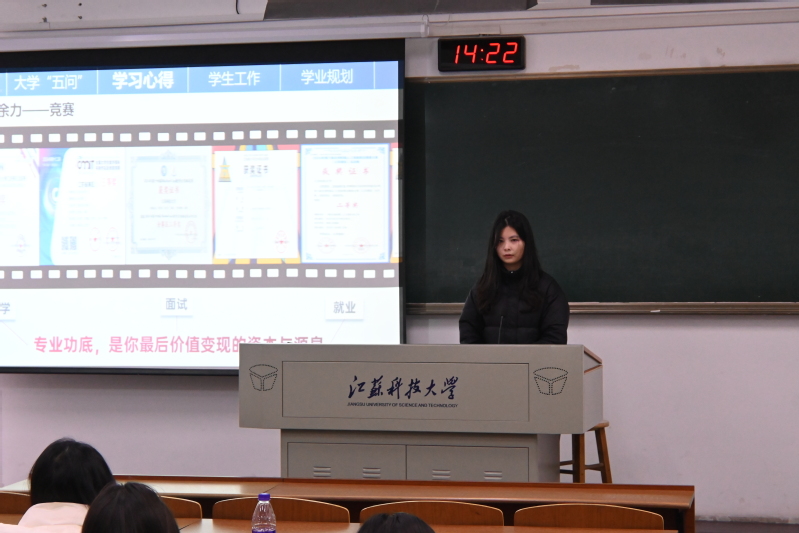 王钰嫣同学以“向下扎根,向上生长”为主题,从学业与科创、学生工作、全面发展三个维度切入,分享了她如何在学业、科研和学生工作中取得平衡。结合自身保研经历,她分享了竹性女孩的成长足迹:“万物都有自己的节奏,不要因为看到别人发光就觉得自己暗淡。”她强调了大学期间全面发展的重要性,鼓励同学们在学好专业知识的同时,积极参与科研训练和竞赛,提升自己的科学素养和实践能力。