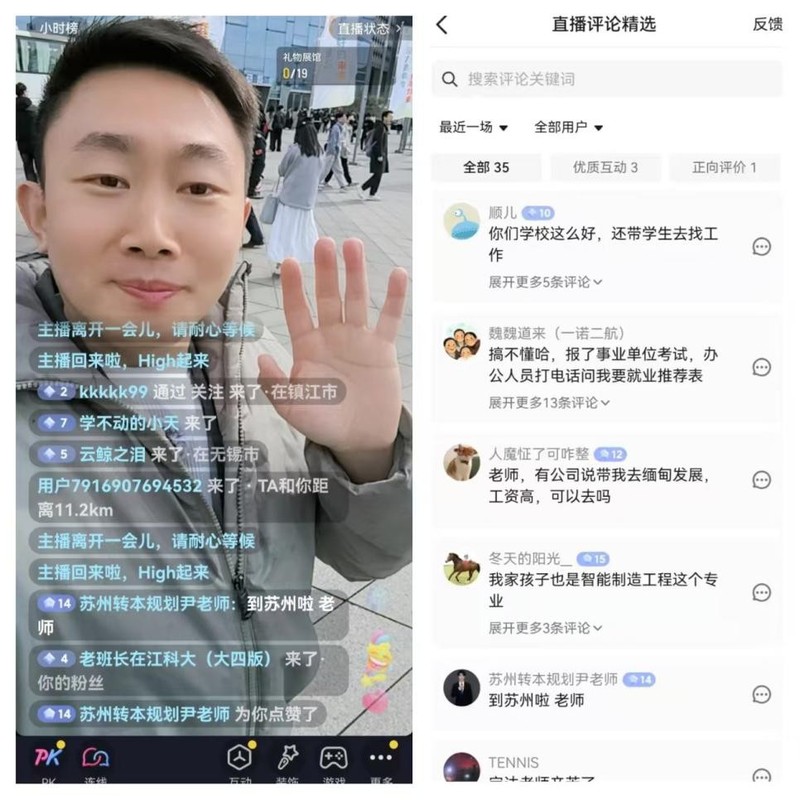 直播互动,云端助力就业,IT行业今年的人才需求有哪些新趋势?跨专业求职应该如何准备?直播间里,学生家长的问题不断刷屏。就业负责老师结合现场情况为线上学生及家长分析行业动态:今年IT企业更看重实践能力,建议大家突出项目经验......,通过此类形式,线上线下的学生都能获取一手求职信息。据统计,本次短时直播累计观看人数近200人次,互动留言数条,吸引了不少学生家长观众。效果显著。
