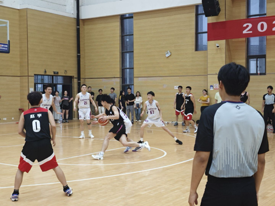 6月5日,计算机学院迎来了第二场比赛,对阵能动学院。经过首场胜利的洗礼,队员们士气高涨,信心十足。比赛开始后,计算机学院依然保持了上一场的战术风格和竞技状态,队员们在场上默契配合,行云流水般的进攻让能动学院难以招架。无论是外线的三分投射,还是内线的强打突破,计算机学院都展现出了高超的技术水平。防守端,他们更是众志成城,通过积极的协防和补位,成功地破坏了能动学院的多次进攻。最终,计算机学院凭借出色发挥再次取胜,以两连胜的佳绩挺进半决赛,此时,计算机学院在整个校园内的关注度和知名度大幅提升,篮球健儿们成为了同学们热议和追捧的对象。